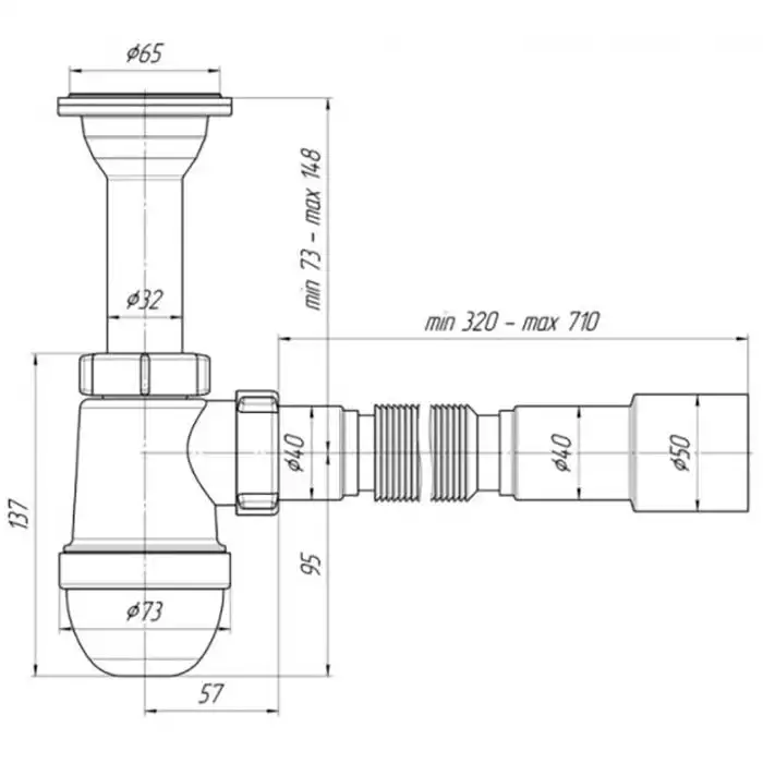 Сифон для умывальника Ani Plast, 1 1/4", 40/50 мм, С2015