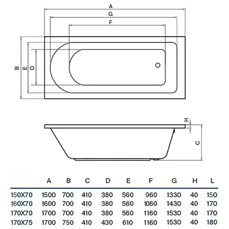 Характеристики Ванна акриловая Koller Pool Dakota, 170х70 см, DAKOTA170X70